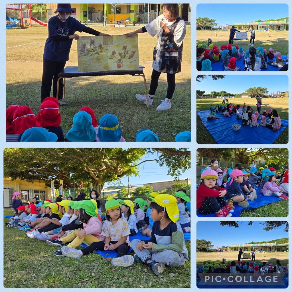 全ての芋が入り焼き上がるまでの間、担当の先生が大型絵本を読んでくれたり