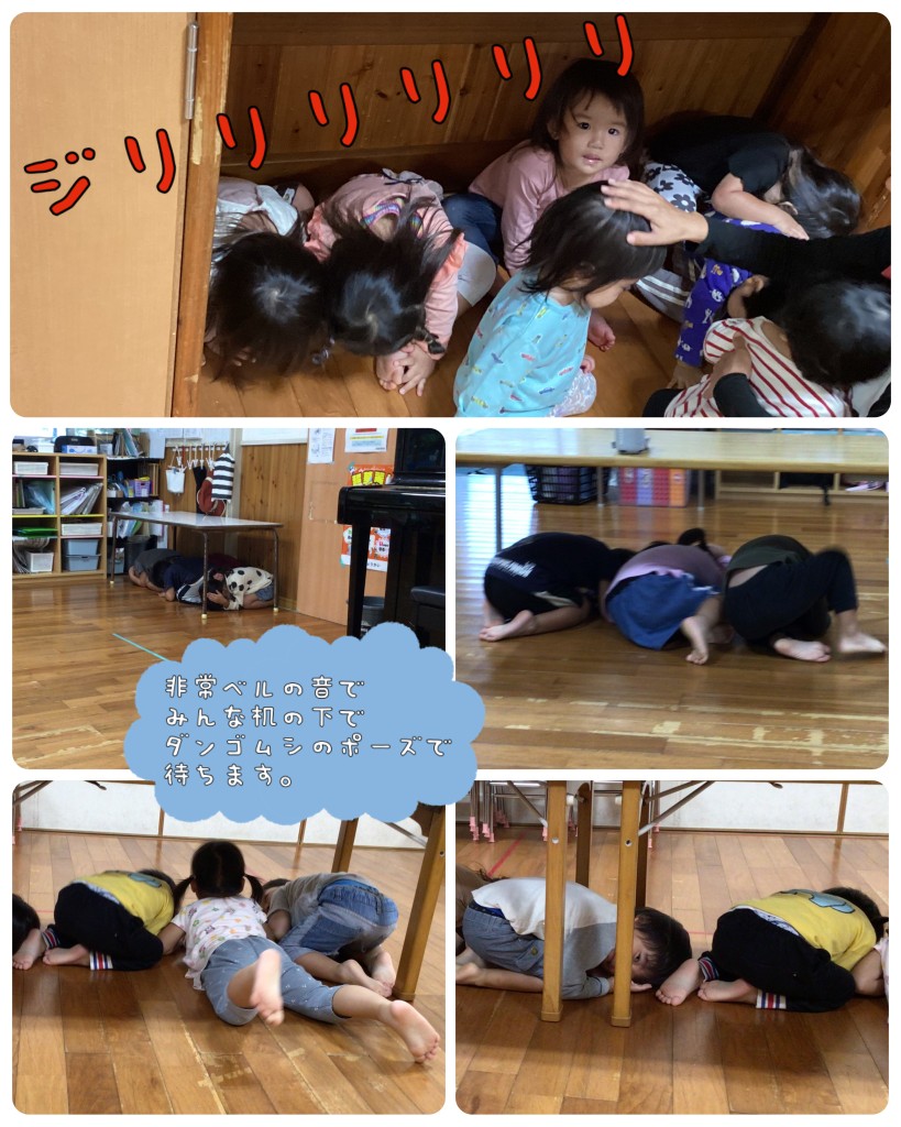 非常ベルの音と同時に子供たちは机の下に潜り込み